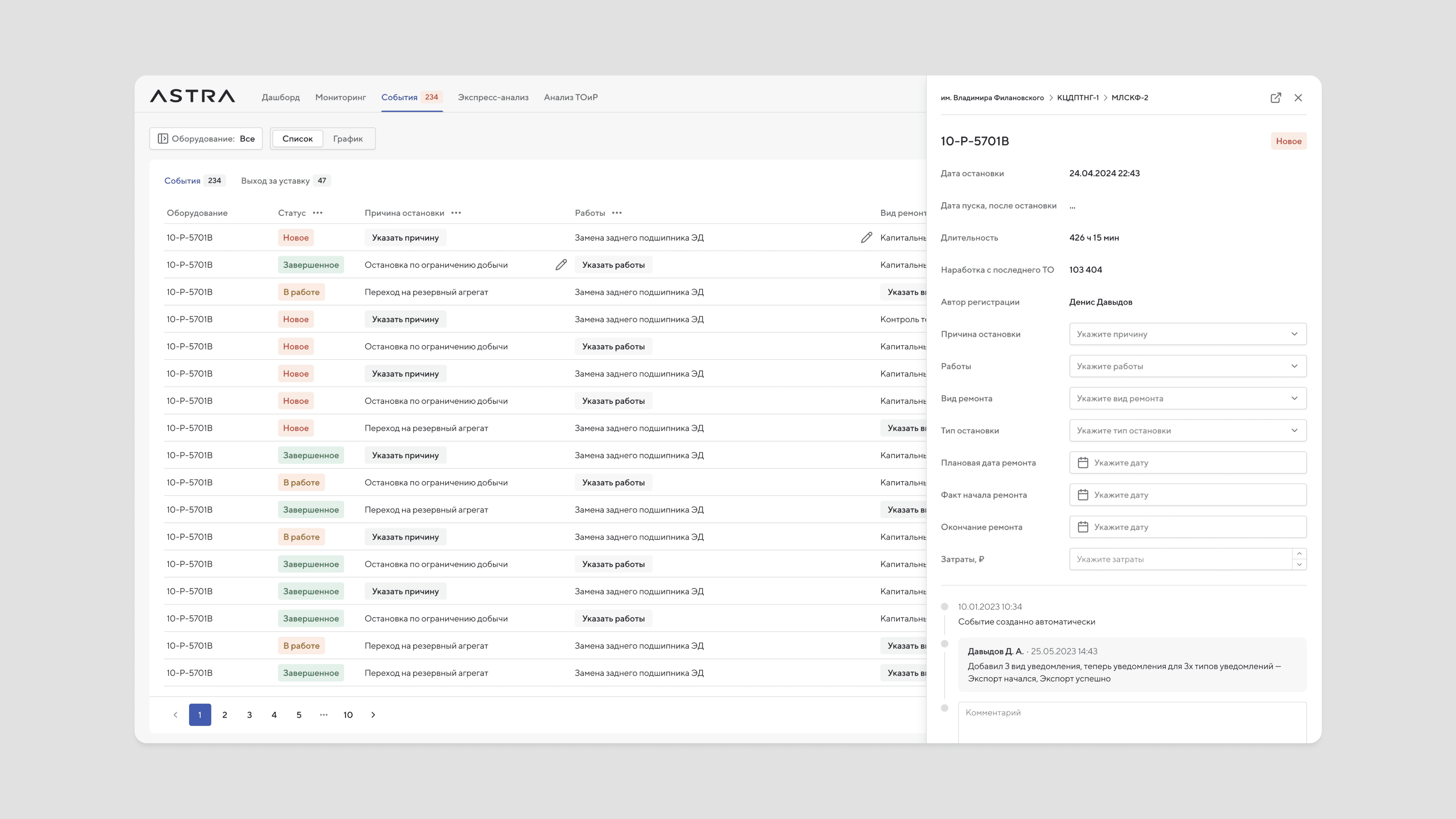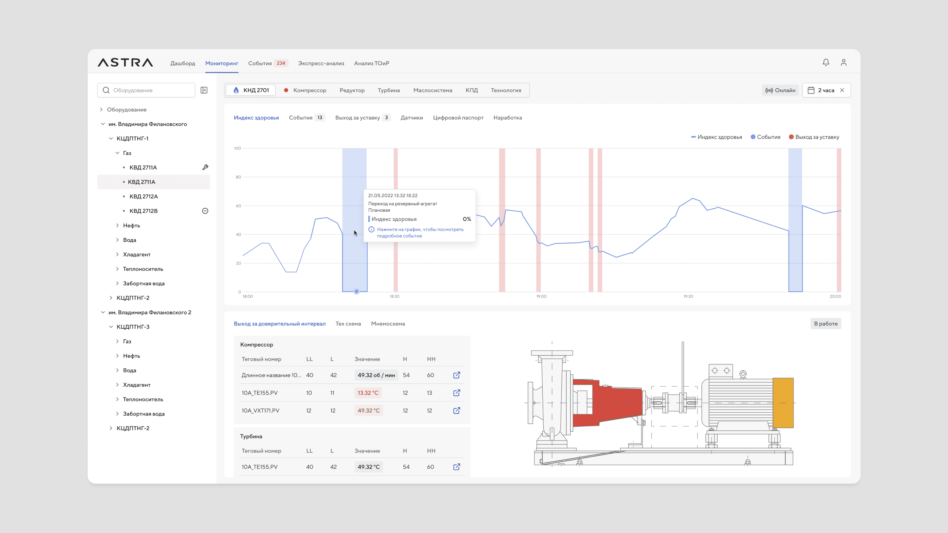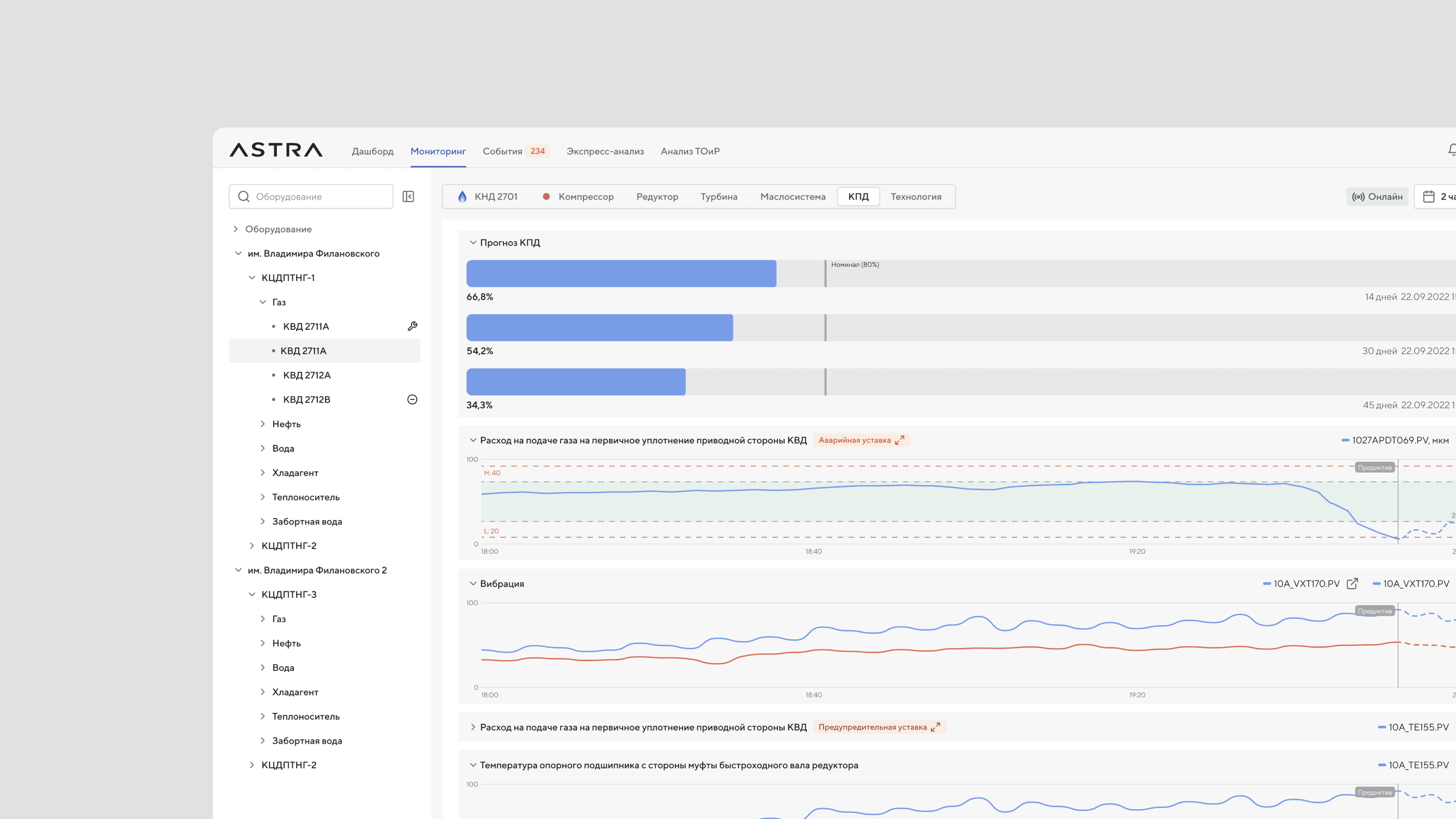 ASTRA assists users in monitoring equipment performance and optimizing downtime through predictive modeling.